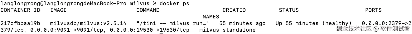 应显示 milvus_standalone 正常运行