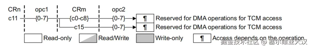 c11 寄存器主要提供 TCM 和 DMA 的保留功能,这些保留功能由处理的实现决定