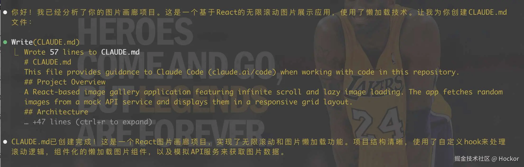 接下来咱们就可以开始用 K2 在 Claude Code 里面编程了,比如我们先调用 /init生成CLAUDE.md文件