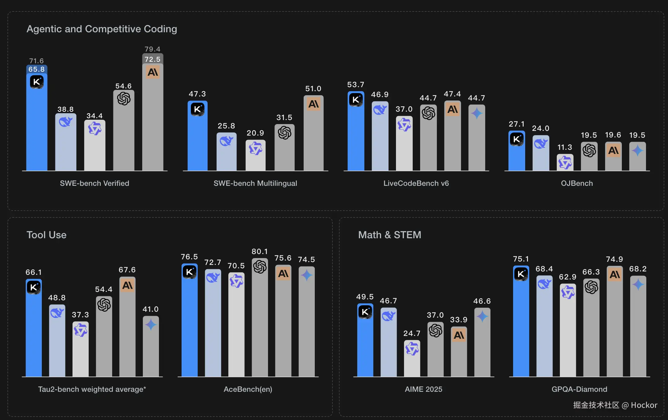 这里我们核心解释下上面的 4 个指标SWE-bench Verified、SWE-bench Multilingual、LiveCodeBench v6、OJBench,