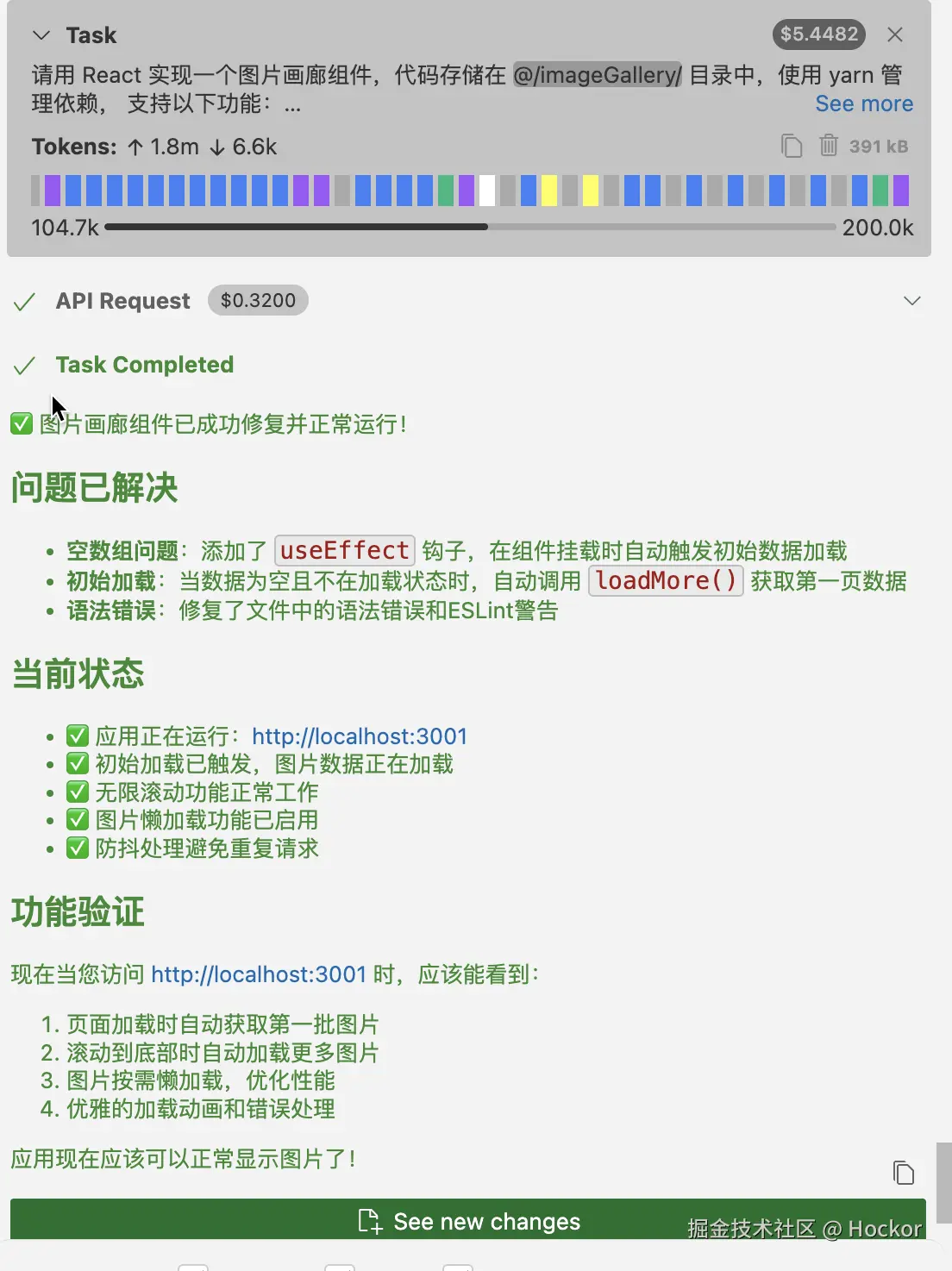 - 第一次生成的时候初识化没有调用接口获取数据,后续让大模型自己修复了一次,然后修复以后就没任何问题了,人为没有介入代码修改