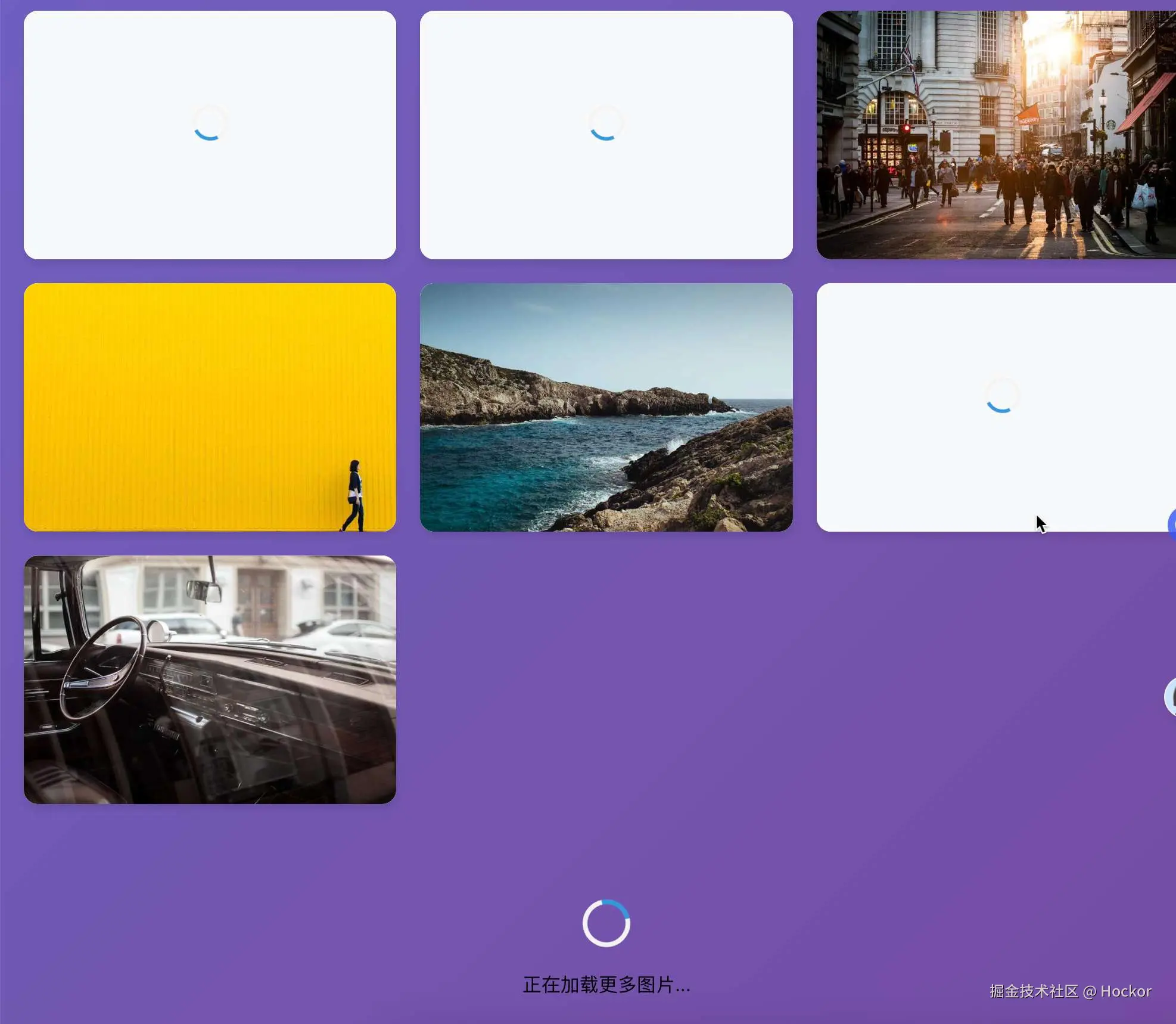 接下来我们在生成一个画廊应用,考察下异步数据加载与分页、视口检测及懒加载实现、性能优化手段(节流、避免重复渲染)等。