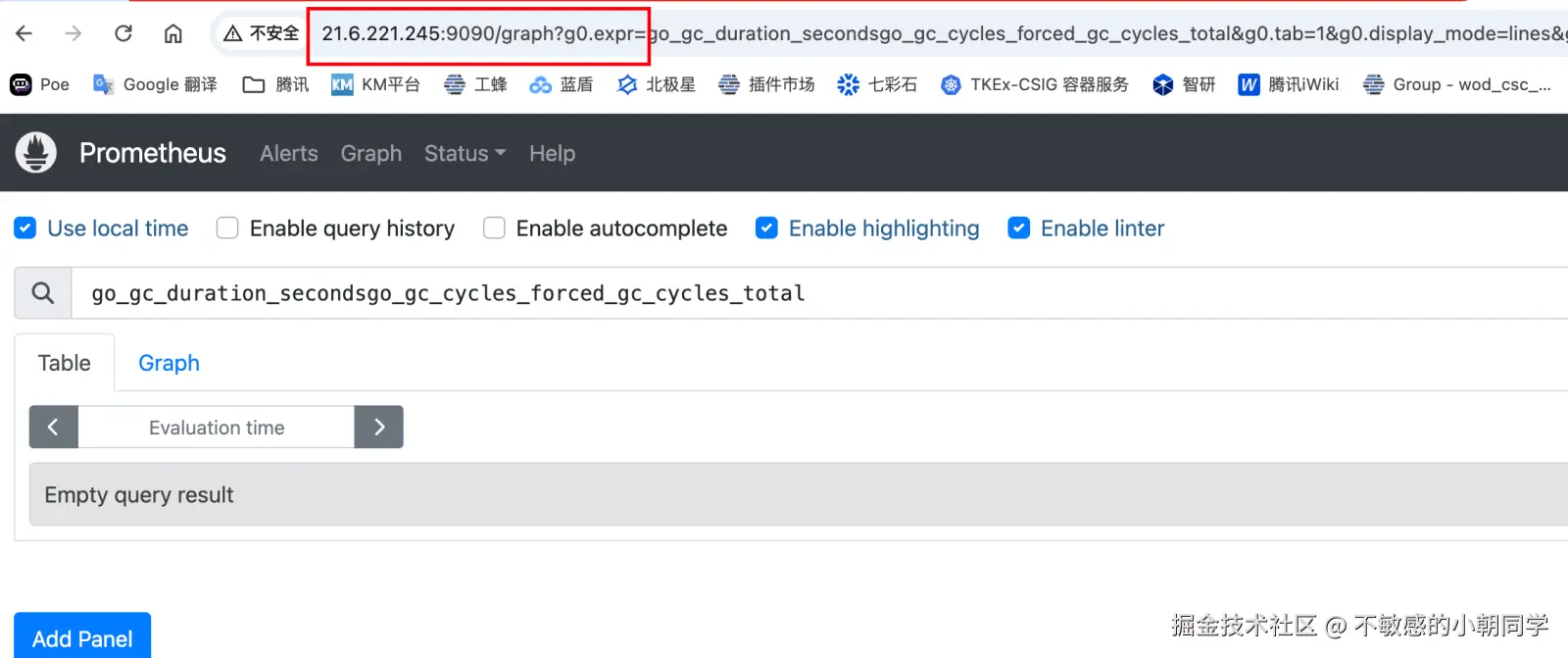 直接访问对应的 39090 端口便能看到对应的 prometheus 的 UI 界面
