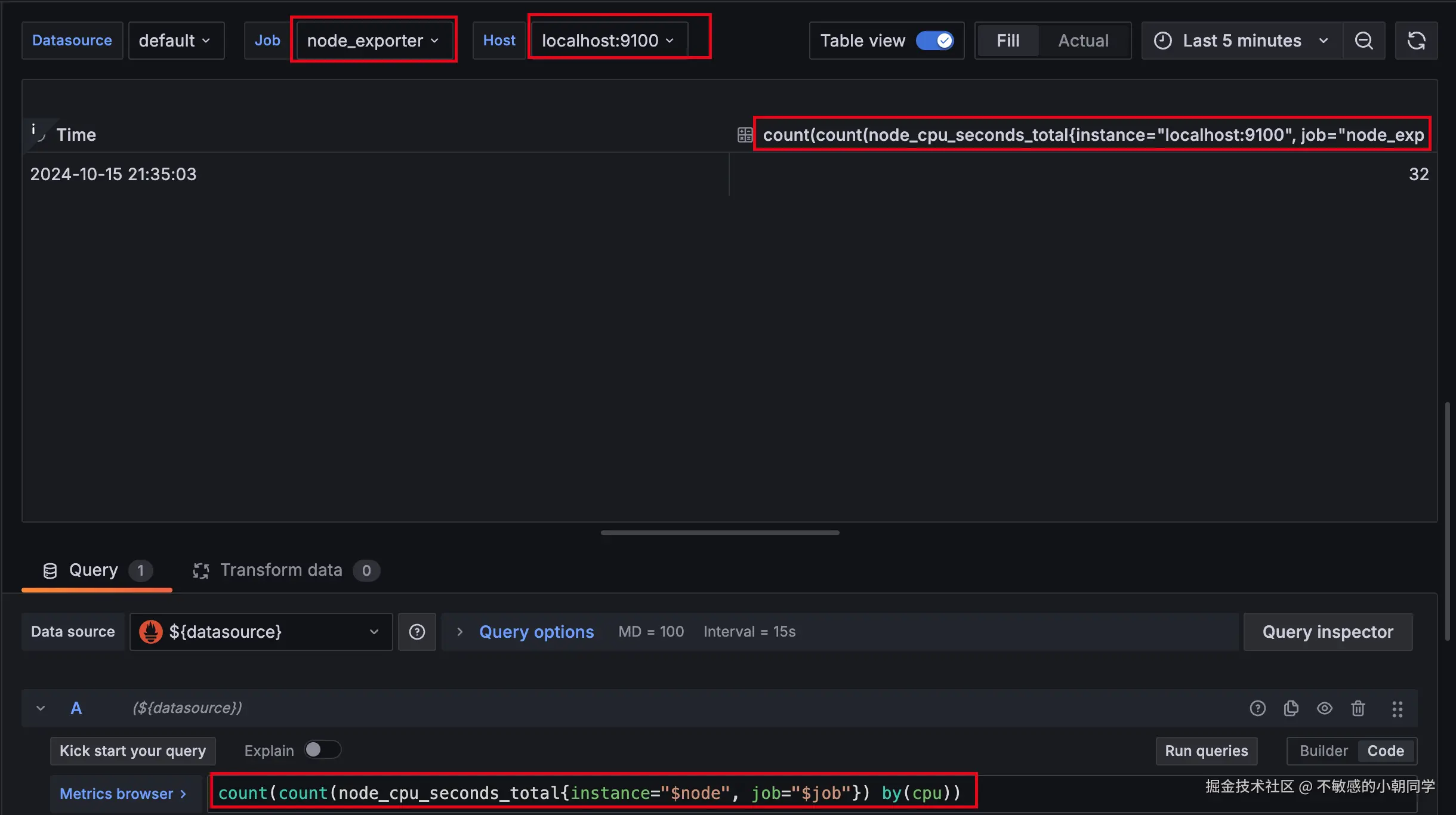 我们以右上角的 CPU 核数来看看具体的查询语句是什么样子的