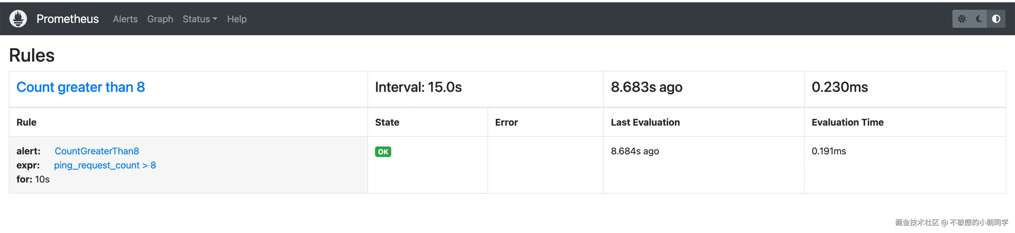 重新启动 prometheus,查看 rules 如下即代表配置成功