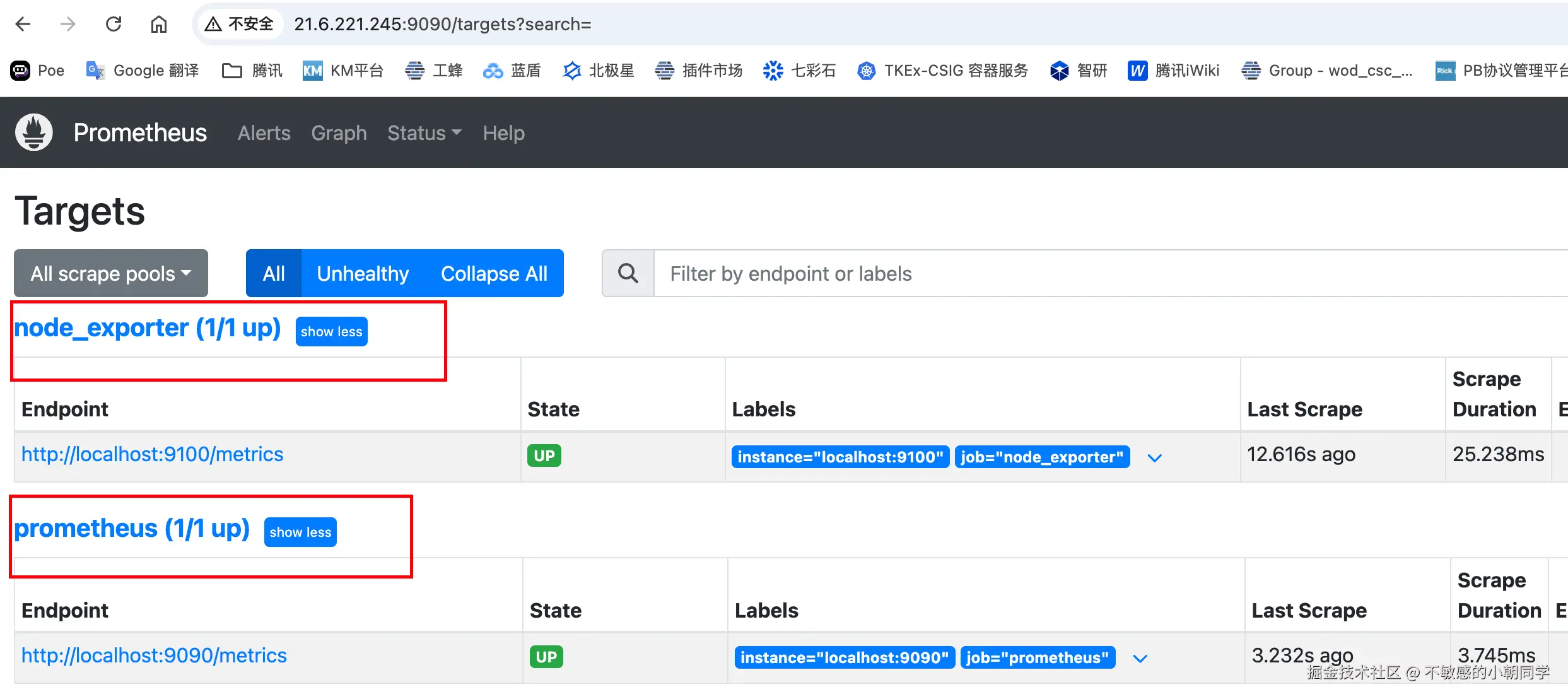 启动完成之后会发现对应的 node_exporter 的 metrics 已经能够被 prometheus 捕获到