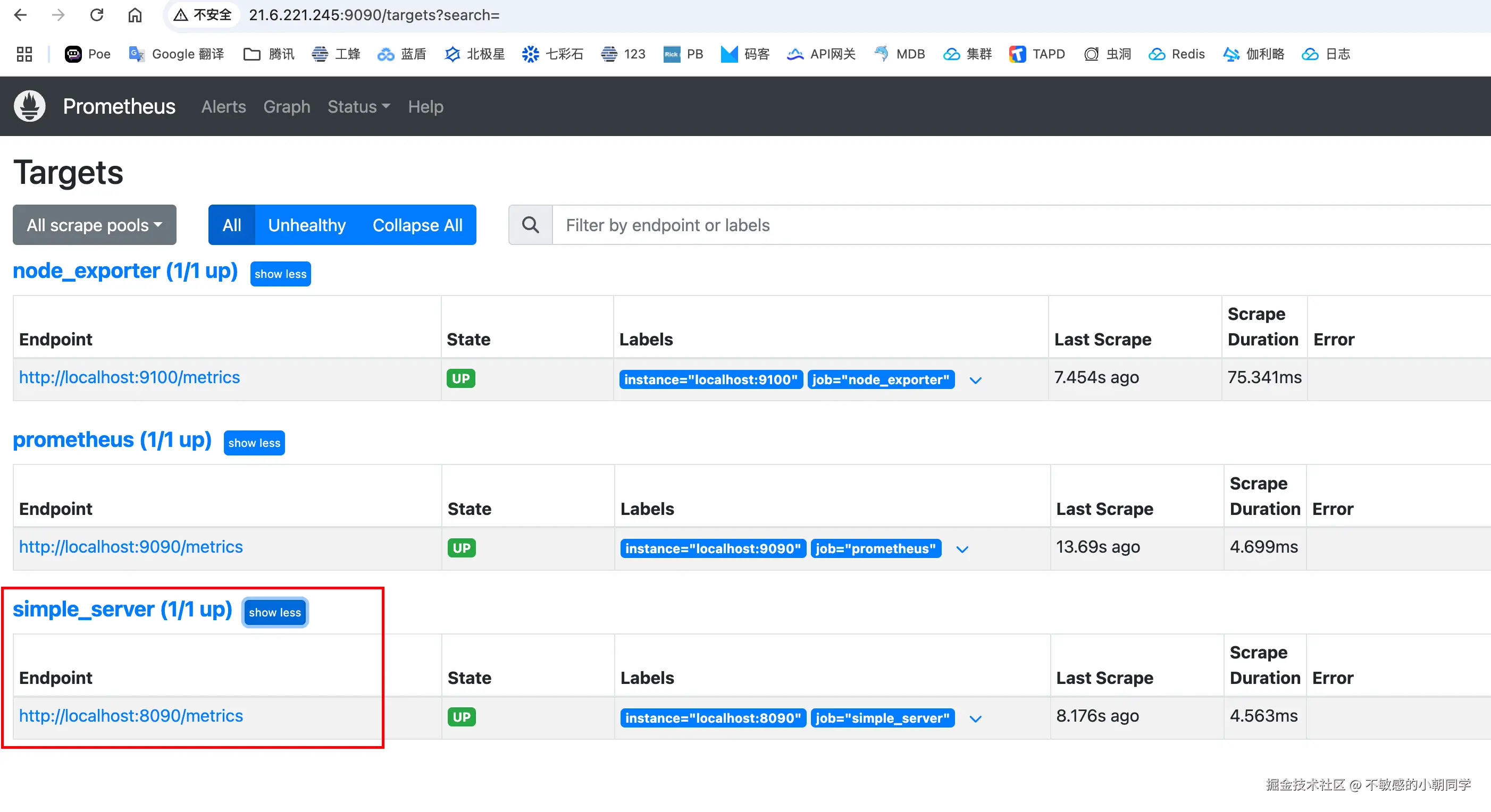 理解了 prometheus 之后,我们可以编写一个最简单的 exporter 服务,服务必须暴露对应的 /metrics 接口供 prometheus 采集指标