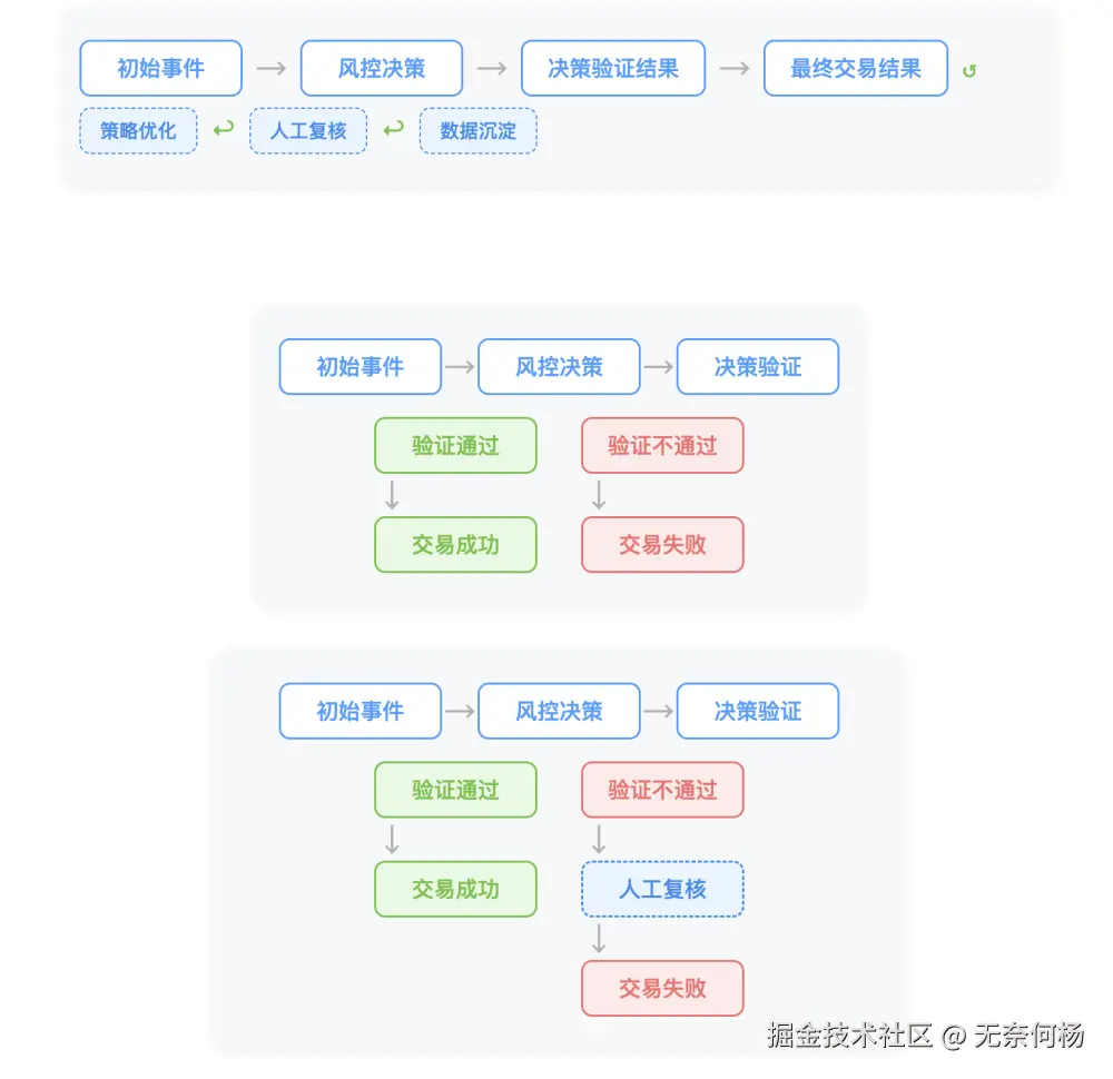 区分验证由来,一种是业务流程本身的,一种是风控附加的,作为本篇讨论的,只是风控附加的,业务本身的风控不应该直接干预。