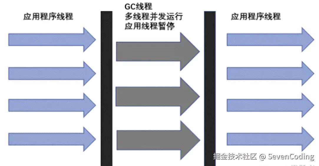 并行收集: 指多条垃圾收集线程并行工作,但此时用户线程仍处于等待状态。