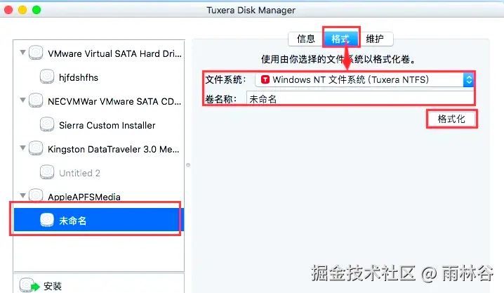 如果想将移动硬盘格式转换为 macOS 扩展格式,也可以通过 Tuxera NTFS for Mac 的 Tuxera Disk Manager 工具实现。