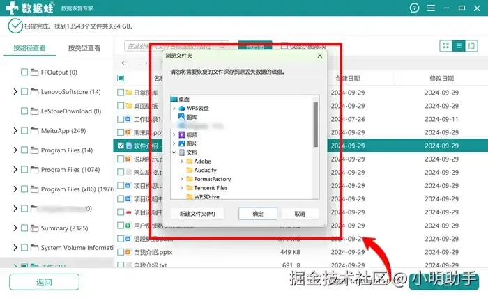 步骤3: 在 【浏览文件夹】中选择出自己目标文件的存放位置,点击【确定】。