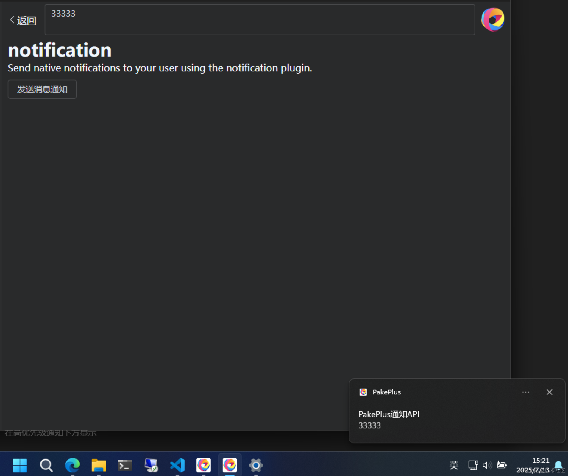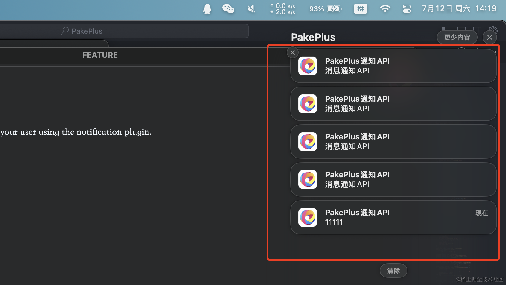 然后就可以发送通知了: