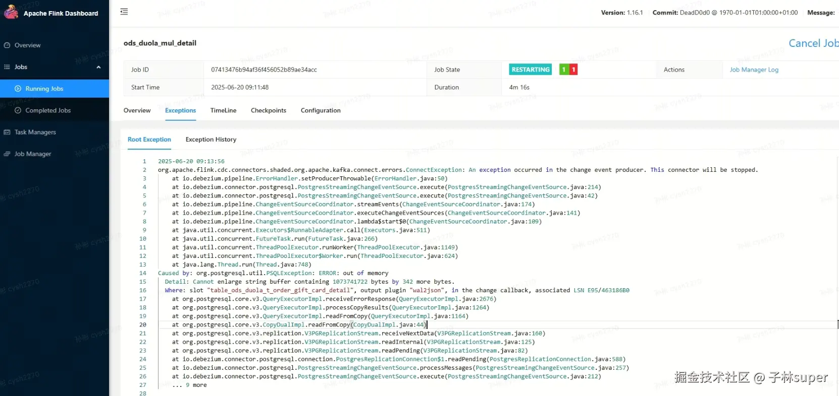 通知开发重启job,进行全量同步