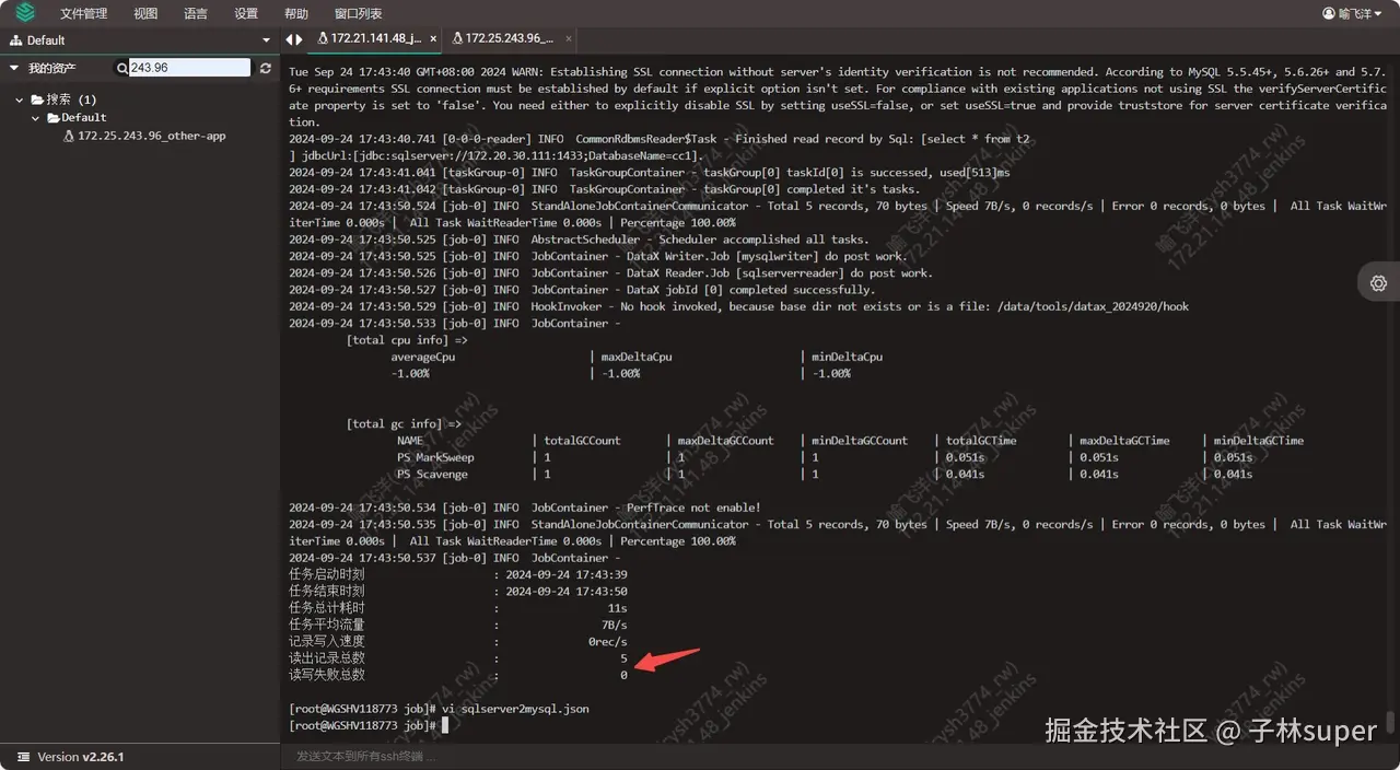 启动: python3 /data/tools/datax_2024920/bin/datax.py /data/tools/datax_2024920/job/sqlserver2mysql.json
