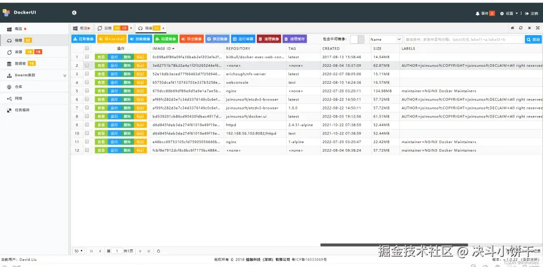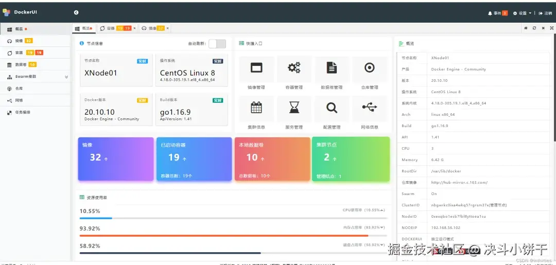 DockerUI 是一个易于使用且轻量级的Docker管理工具。通过Web界面的操作,可以更方便地让不熟悉Docker指令的用户更快地进入Docker世界。DockerUI覆盖了Docker CLI命令行的95%以上的命令功能。通过DockerUI界面提供的可视化操作功能,可以轻松执行Docker环境和Docker Swarm群集环境的管理和维护功能。