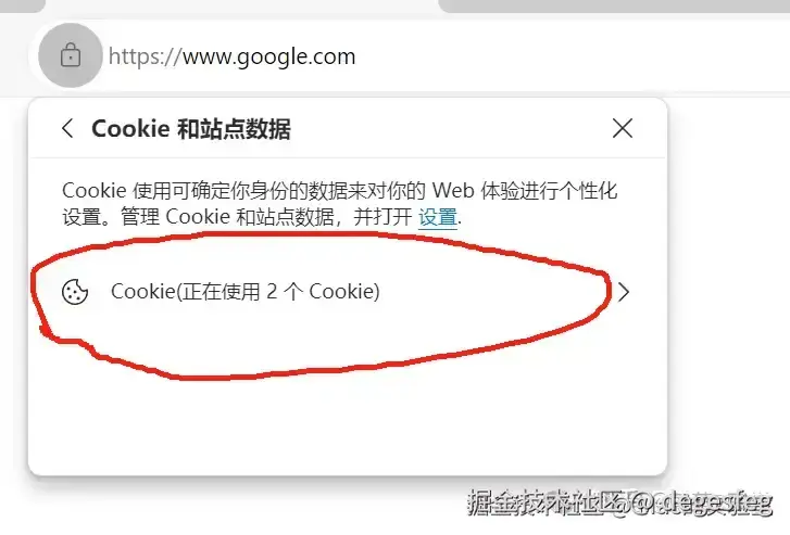 使用Microsoft Edge 浏览器,打开www.google.com,点击网站边上的小锁,选择COOKIE和站点数据,删除Cookie→google.com