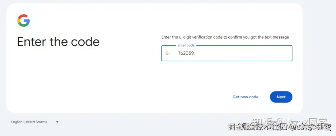 步骤五:输入你收到的 6 位验证码(一般自带 G-,你只要填数字就行)