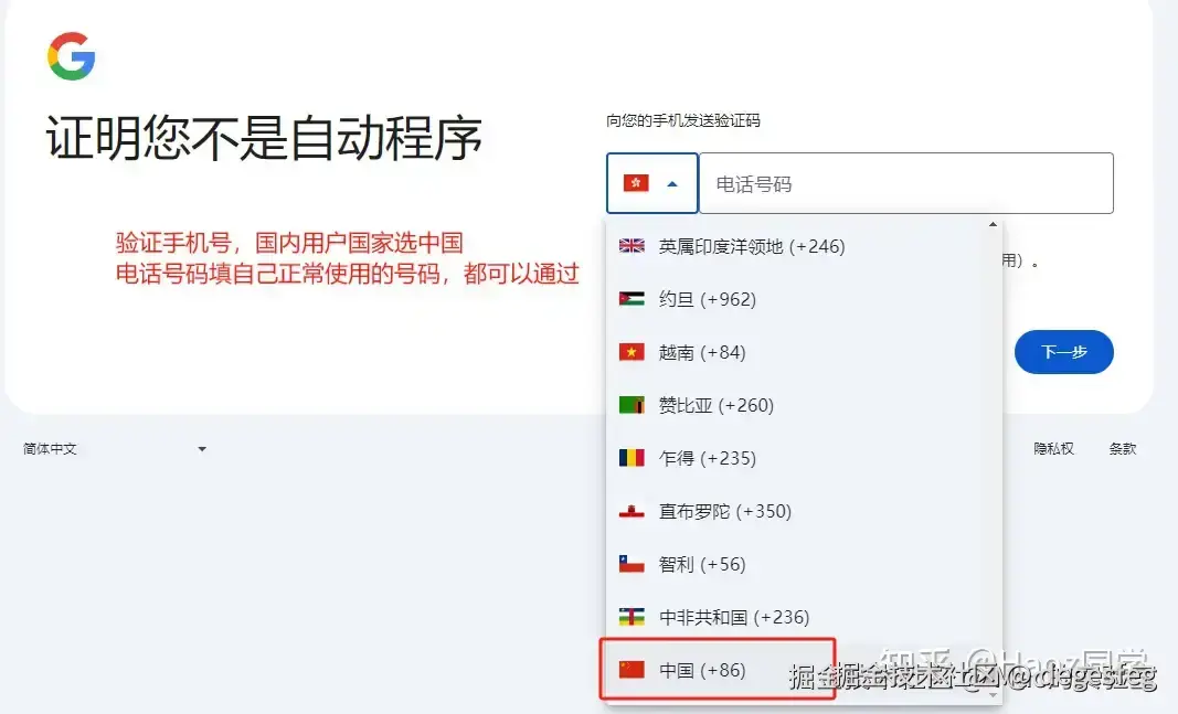 如果还是卡在手机号注册,可以把+86 变为+860 试试,觉得麻烦不想折腾的同学也可以在公众号:Mac的实验室 后台回复 谷歌 几分钟就搞定了。