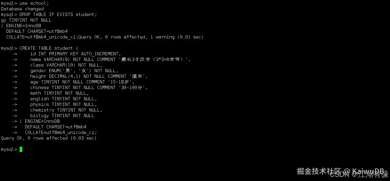 在KWDB上创建一个名为school的目标数据库。确保新创建的数据库名称与源数据库(MySQL)中的数据库名称保持一致。这一步骤对于保证数据迁移过程的准确性和顺利进行至关重要。