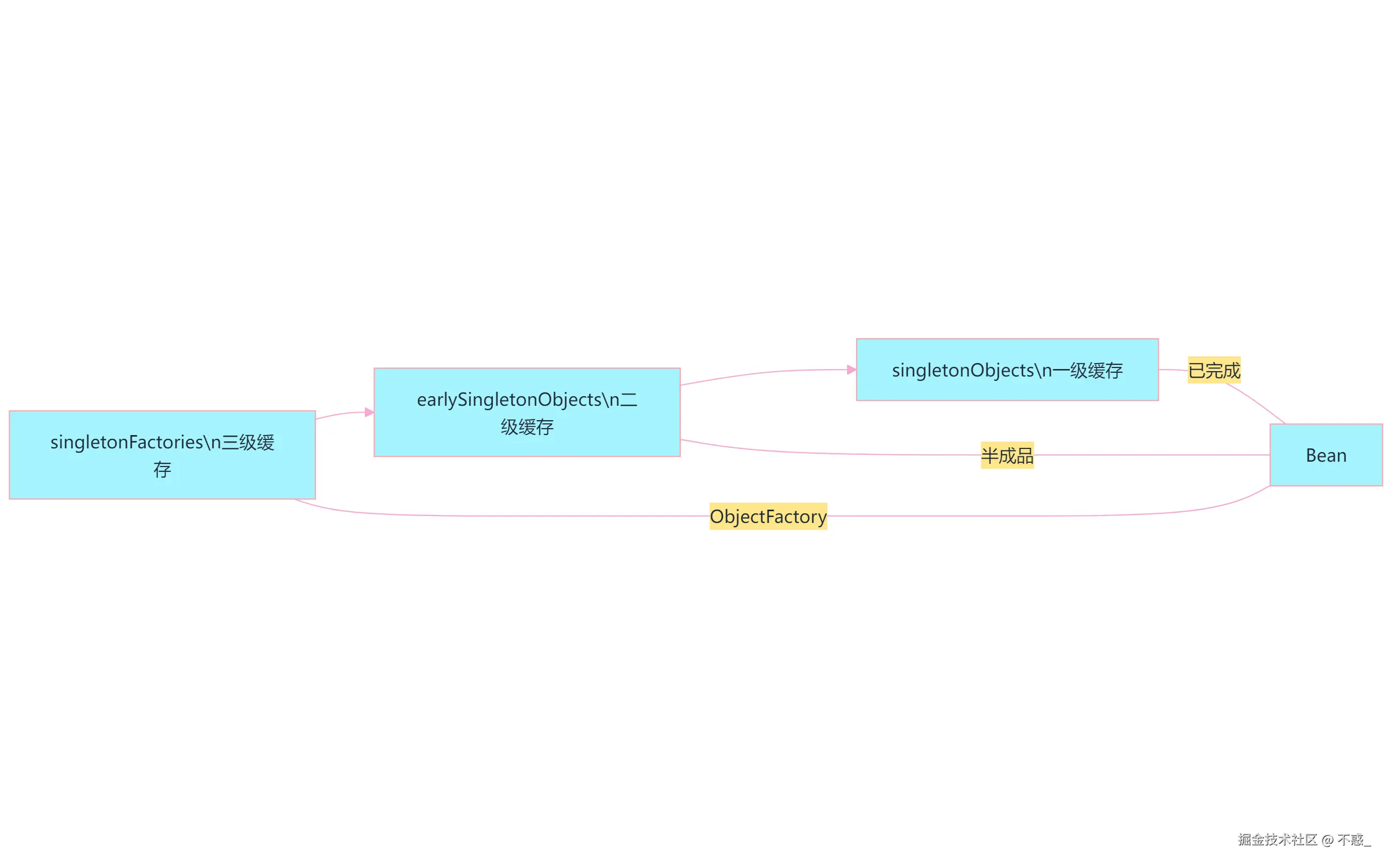 - singletonObjects 只有完成全部生命周期的 Bean 才能晋级。