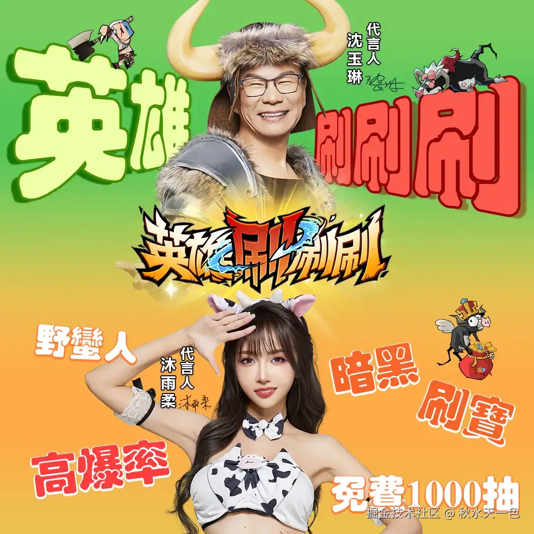 从它投放的买量素材来看,它在其宣传上可是下了血本,请了名人来宣传该游戏,比如网红主播沐雨柔,和整蛊节目主持人沈玉琳,很好的为【英雄刷刷刷】打开了知名度。除了挂名宣传,代言人也会亲自为该游戏站台,一起拍摄视频,保持话题性和传播度。