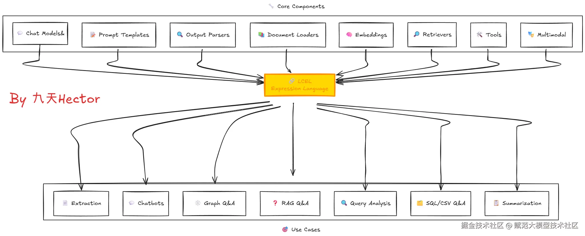 大模型本质上无法直接解决实际的问题,仅仅是一个能够分析、推理和生成文本的黑盒。直到现在,所有的开发者们仍然在不断探索如何把大模型的强大能力与实际应用场景结合起来,而当时LangChain的出现,直接让大模型开发变得简单起来,它将大模型开发过程中常用的功能、工具、流程等等全部封装成一个个的组件,使开发者可以像搭乐高积木一样,快速的组合出适用于不同场景需求的大模型应用。