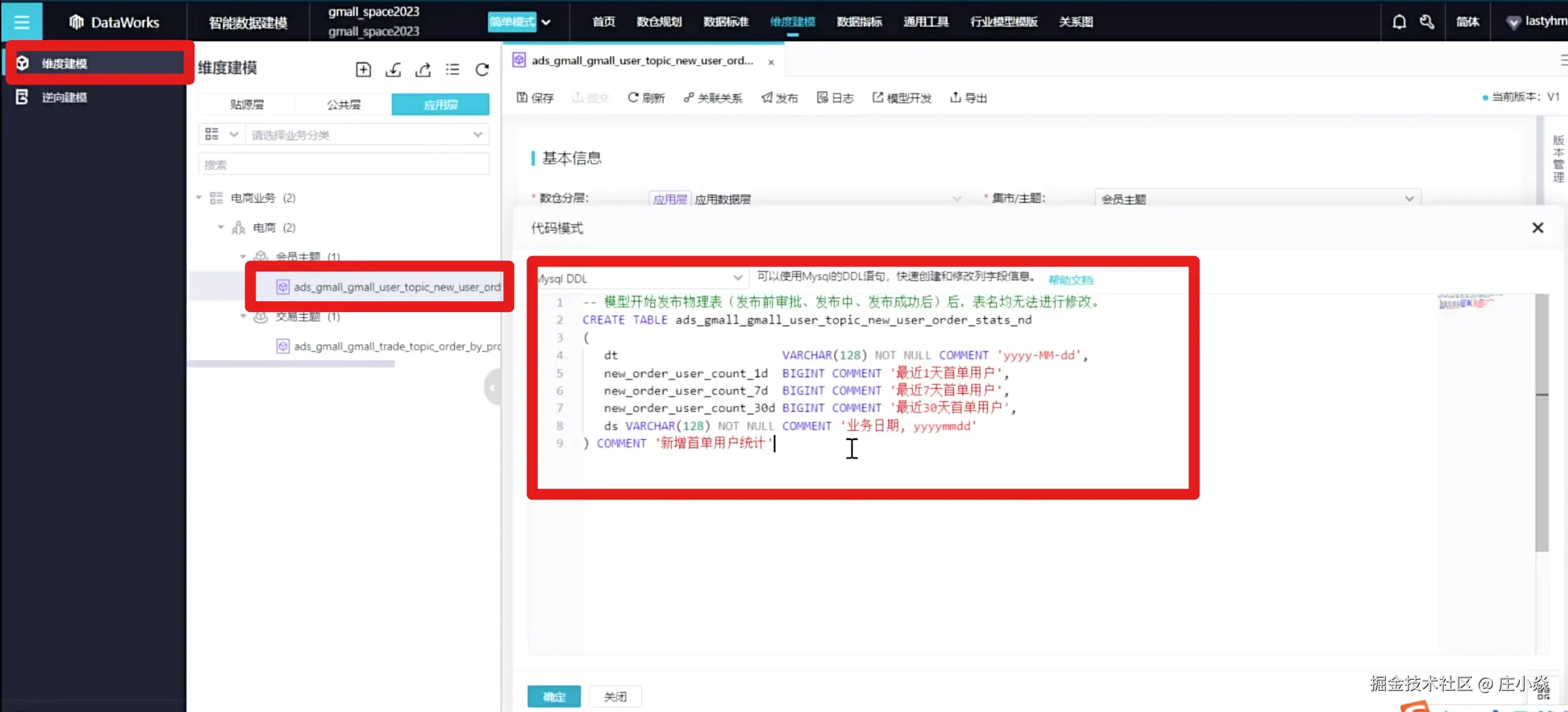 业务数据库创建数据表