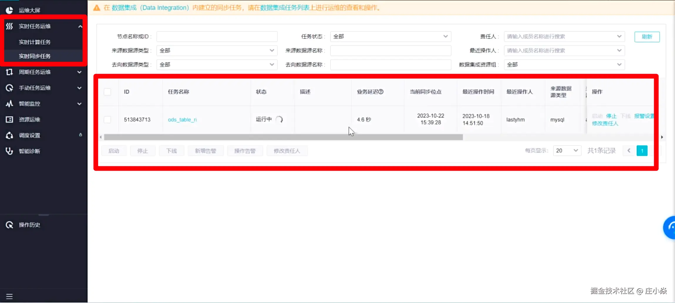 数据实时同步正在执行