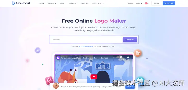 Renderforest是一款以动画设计和视频制作为主的在线工具,同时也提供免费 Logo 设计功能,适合需要制作动态 Logo 的用户。
