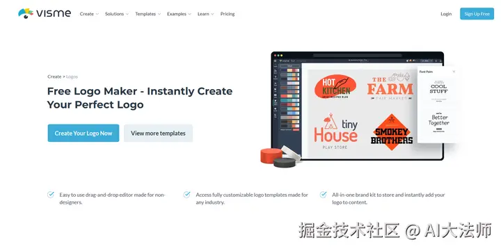 Visme 是一款强大的在线设计工具,除了 Logo 设计,还提供丰富的图表、图片和视频模板,适用于多种创作需求。