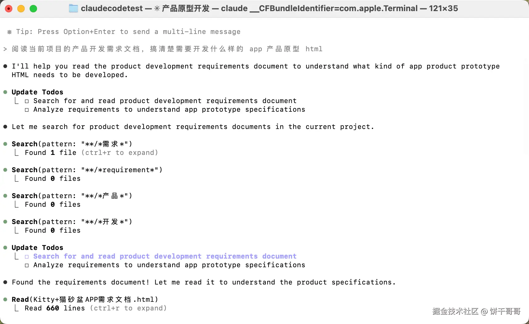 先让它阅读文档,搞清楚我们现在要干嘛,同时也测一下 Claude Code 是否能跑通?