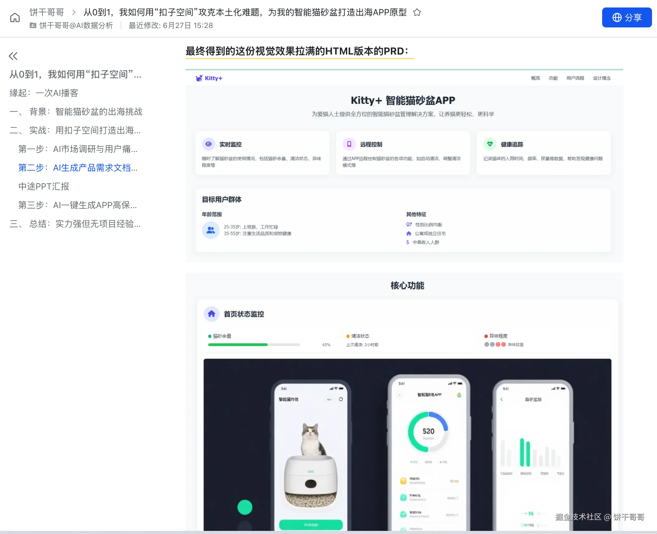 正好前段时间用扣子空间做了一期从 0 到 1 打造出海 APP 原型的内容从0到1,我如何用“扣子空间”攻克本土化难题,为我的智能猫砂盆打造出海APP原型,但说实话效果一直不是很满意,刚好这会拿 CC 来跑跑看。
