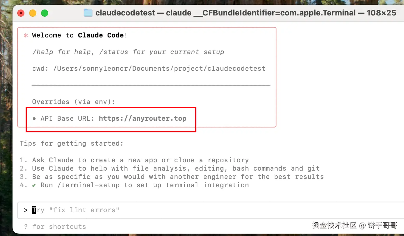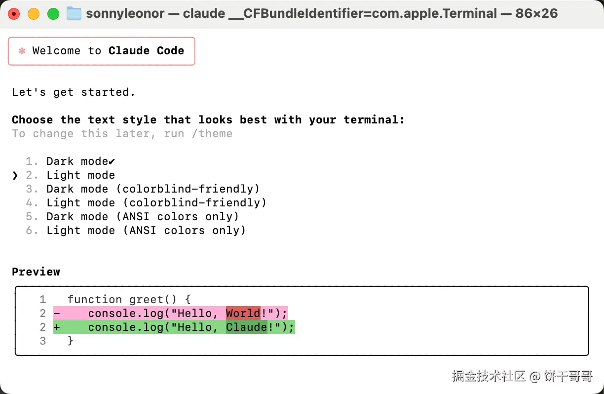 - 启动 Claude Code: 在您的项目目录或任意位置的终端中,输入