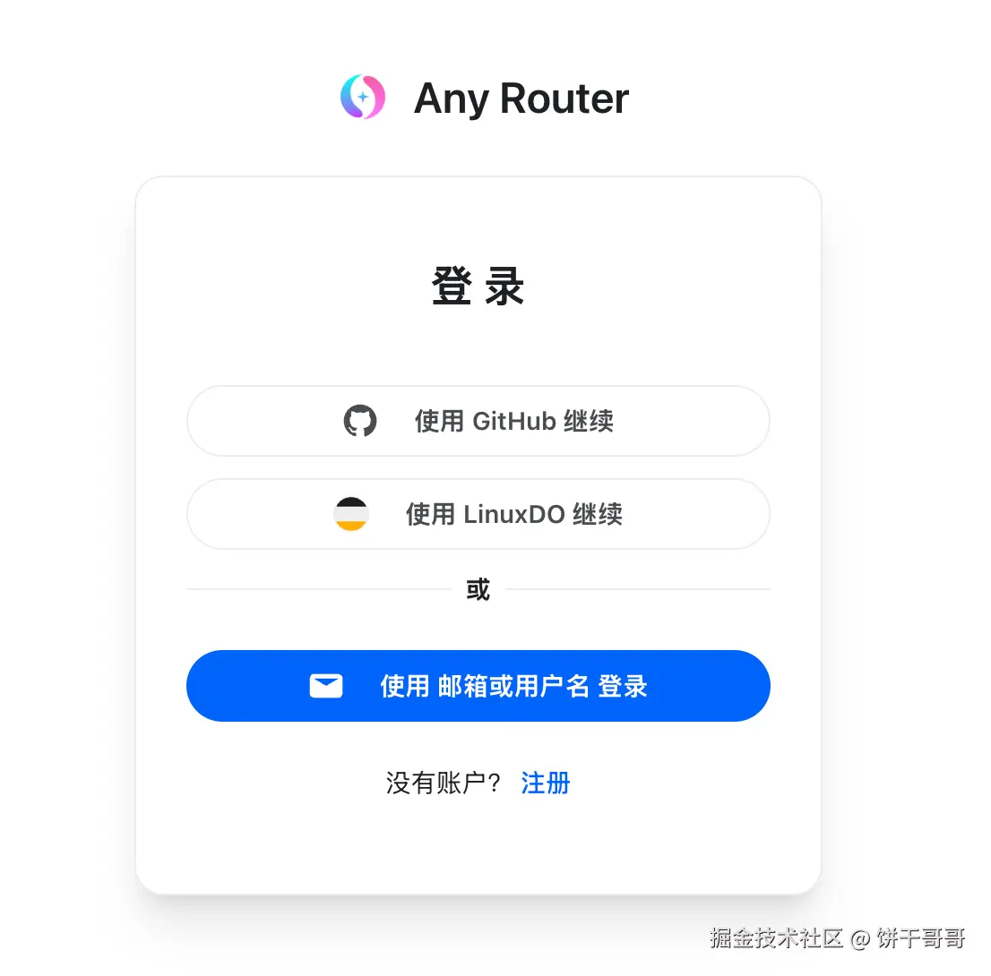 打开链接https://anyrouter.top/register?aff=Wmh1,用 github 登录就行。