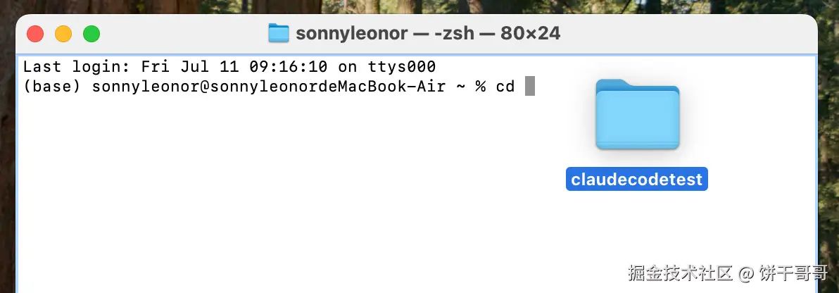 如下图,就看到我们切换到了文件夹claudecodetest里了