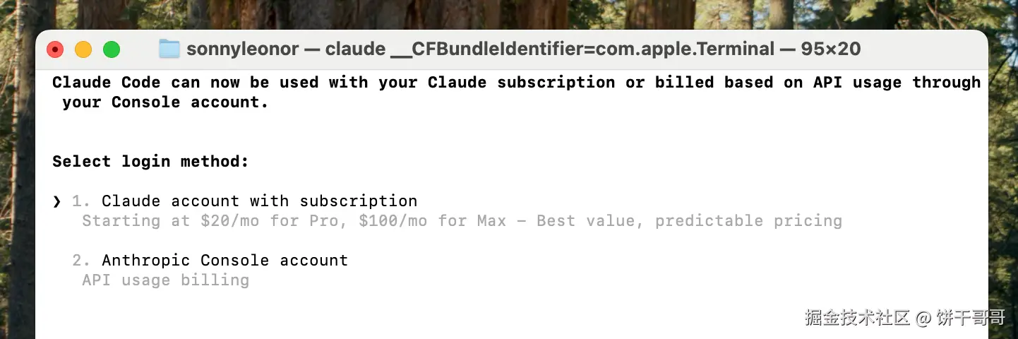 - 账户登录与授权: 首次运行时,Claude Code 会引导您进行配置。它支持两种主要的登录方式: