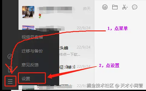 使用和手机一样的WIFI,登录电脑微信,然后在手机微信中,点【我】-【设置】