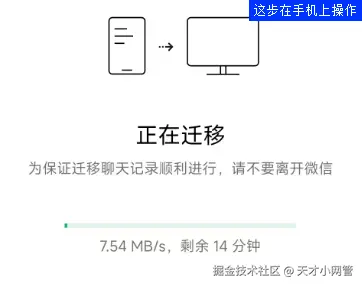 1,本教程需要用到电脑端微信的聊天记录,一般来说,电脑微信端的聊天记录是不全的,最全的记录在手机上,所以首先要把聊天记录从手机上迁移到电脑上,补全电脑上的聊天记录。