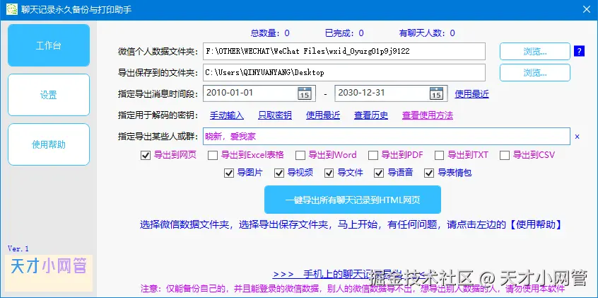 本文的教程,可以快速地把聊天记录一波导出到WORD文档或者PDF中,可以方便地去打印,效率提升百倍,对帮你看记录的律师的效率也会快一些。