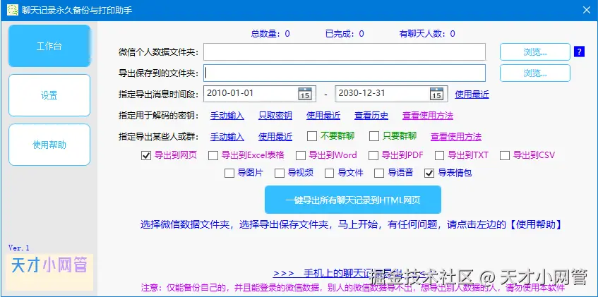 首先要准备好聊天记录导出软件:聊天记录永久备份与打印助手,该工具可以在下面的官方网站找到。