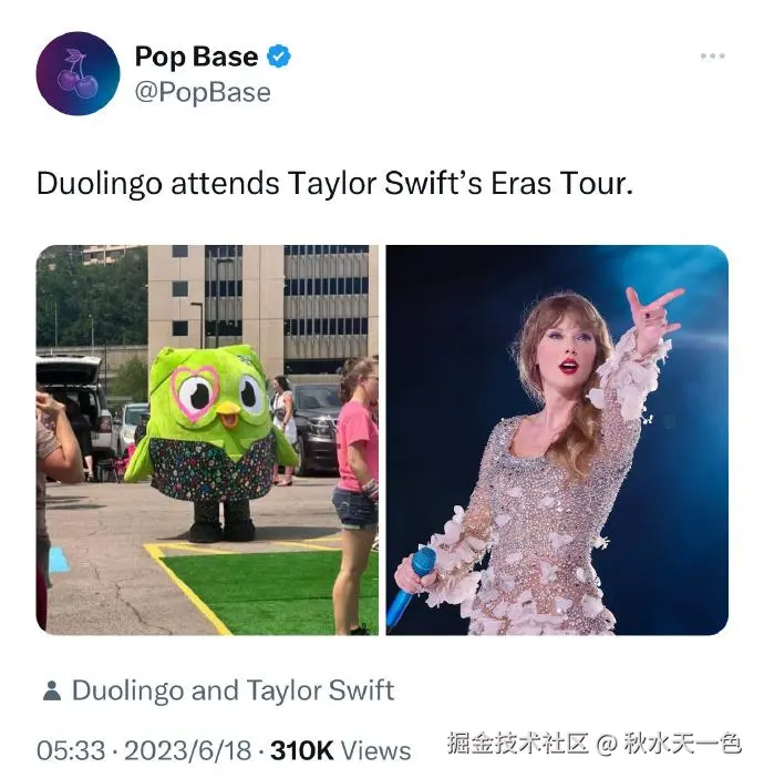 又比如在泰勒斯威芙特的演唱会现场,一边公款追星,一边吓死几个演唱会现场“玩物丧志”的多邻国用户。