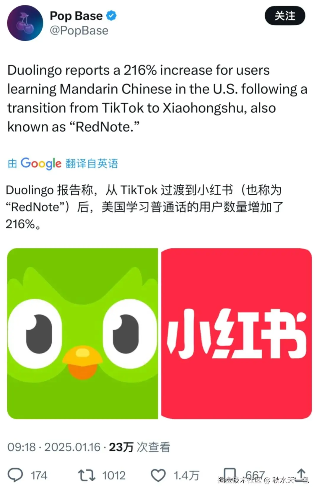 知情人士更是发布数据,声称多邻国是除小红书以外最大的TT逃亡事件受益者,属于是老天赏饭吃。
