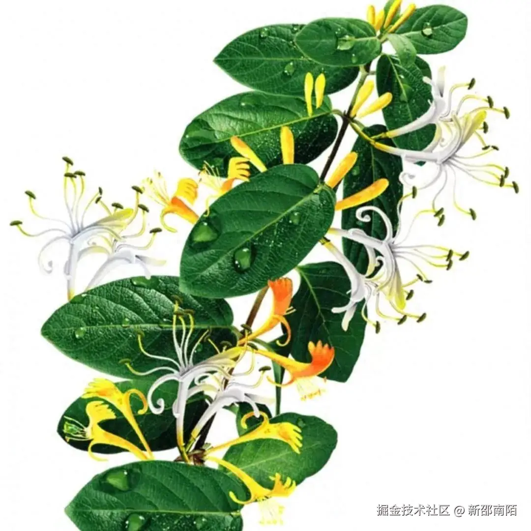 金银花,又称金银藤、忍冬、鸳鸯藤,忍冬科忍冬属忍冬组缠绕亚组植物忍冬(Lonicera japonica Thunb.)的干燥花蕾或带初开的花,是常用大宗中药之一。1984年,国家中医药管理局将金银花确定为 30 种名贵中药材之一,后又被卫生部定为药食兼用品种之一,享有“国宝一枝花”美誉。金银花俗称“生物抗生素” ,具有“凉散风热,清热解毒”的功效,主治疮痈肿、丹毒、喉痹、热毒血痢、发热等症。
