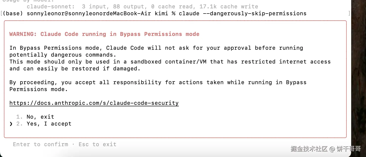 为了防止AI在执行过程中反复问我要权限,打断流程,我开启了Claude Code的“狂飙模式” :