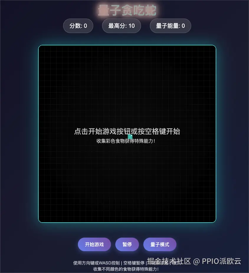 此时,您可以在浏览器中打开 quantum-snake.html 文件,并查看游戏效果。