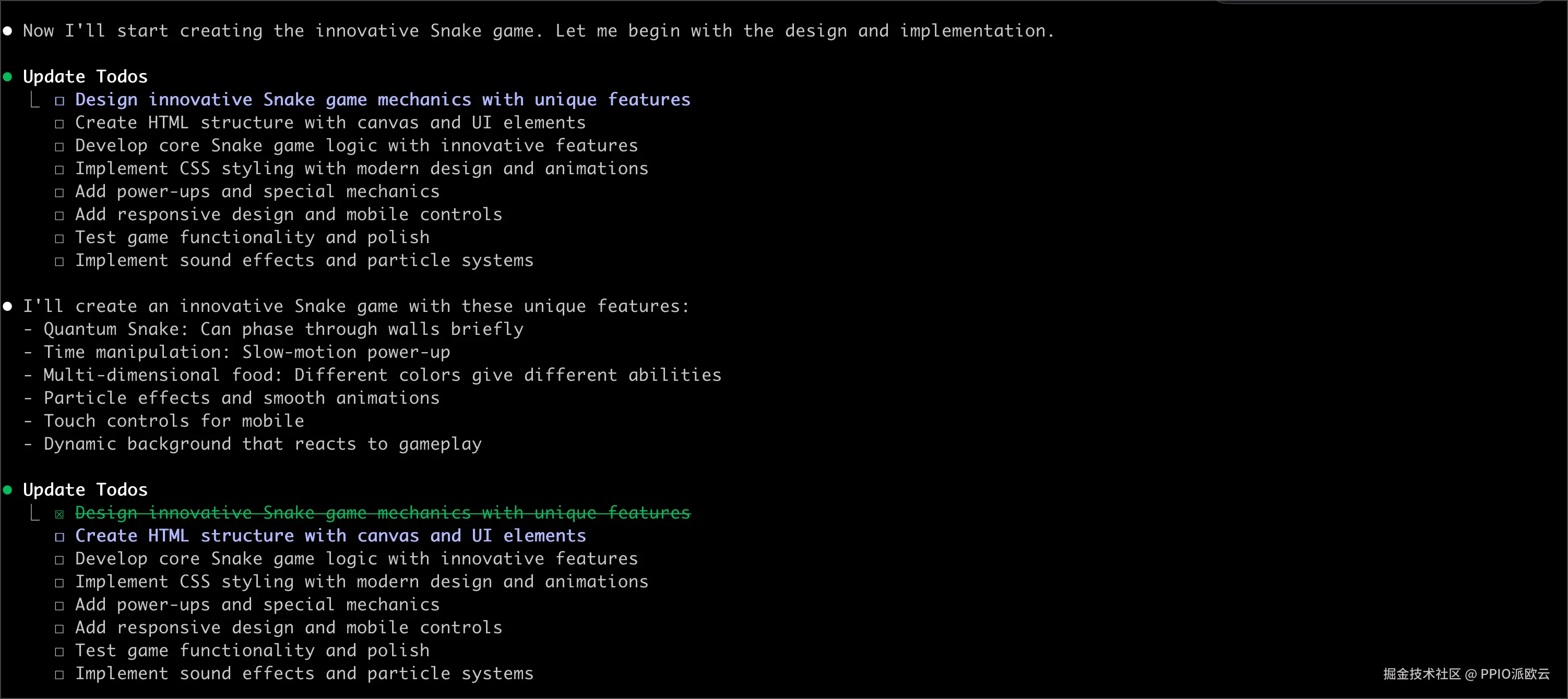 每完成一个任务,Claude Code 会勾选已完成的任务,并规划和说明下一个任务的细节。