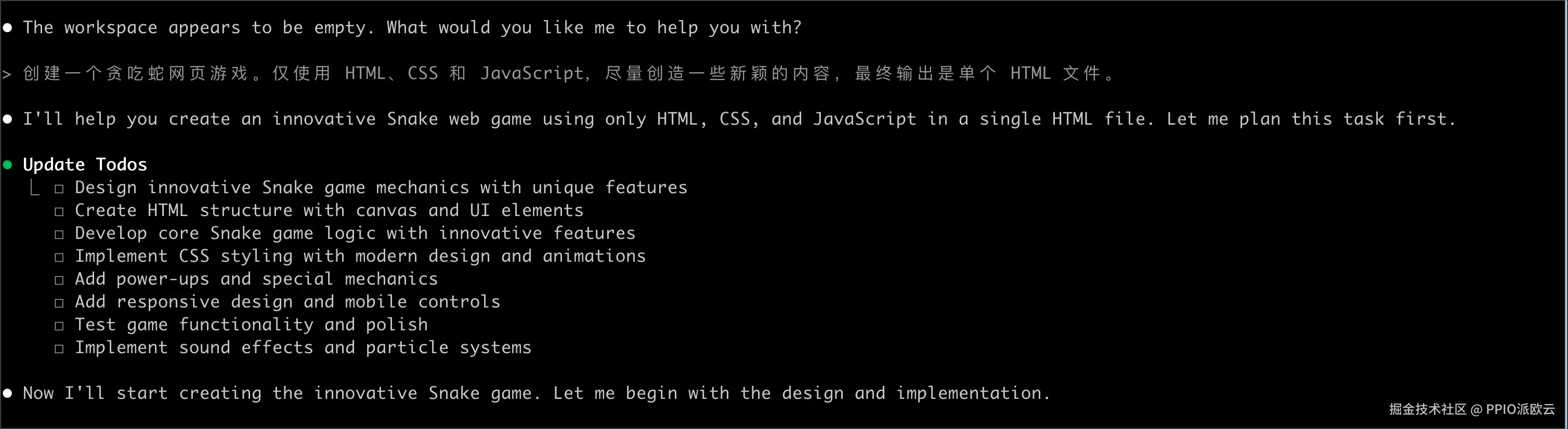 输入您的任务和需求描述并按回车键开始任务。