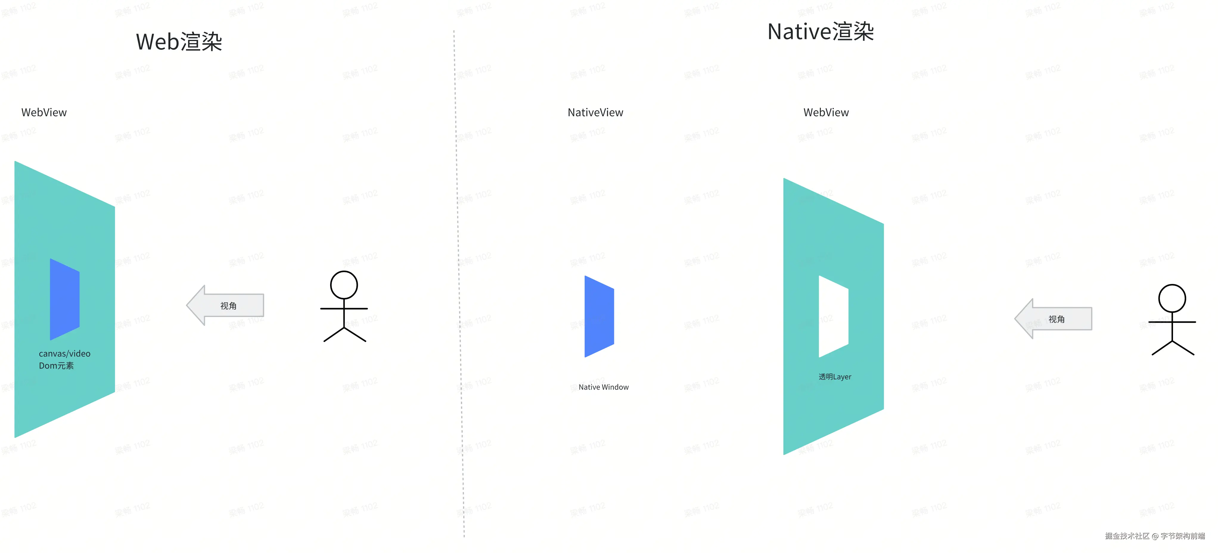 - 相对纹理同步方案,挖洞方案无纹理劫持,性能较好 | - 需要内核支持,内部业务需集成tt_webview,外部业务需自行开发对应版本内核逻辑