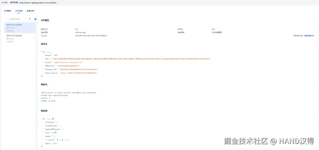- 请求详情,还原完整交互链路:查看每个 API 的请求方式、调用页面、状态码、请求头、响应头及响应体等详细信息,助力开发者精确还原问题场景与数据交互过程。