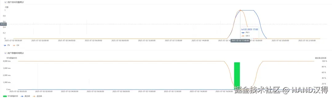 页面详情分析,洞察每一秒的加载体验:提供页面加载性能趋势图,拆解各加载阶段耗时,统计访问次数与用户停留时长,帮助你深度理解页面体验表现与用户行为路径。